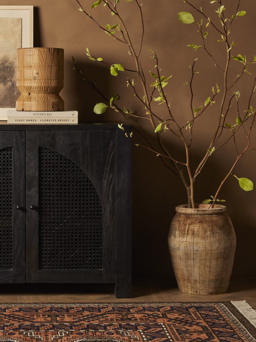 Fabricada con madera recuperada, este jarrón decorativo grande es más que un simple elemento decorativo; es una celebración de la belleza natural y la sostenibilidad. Diseñada para aportar un toque de encanto a tu hogar, es perfecta para exhibir flores secas en un aparador o añadir carácter en una cómoda.