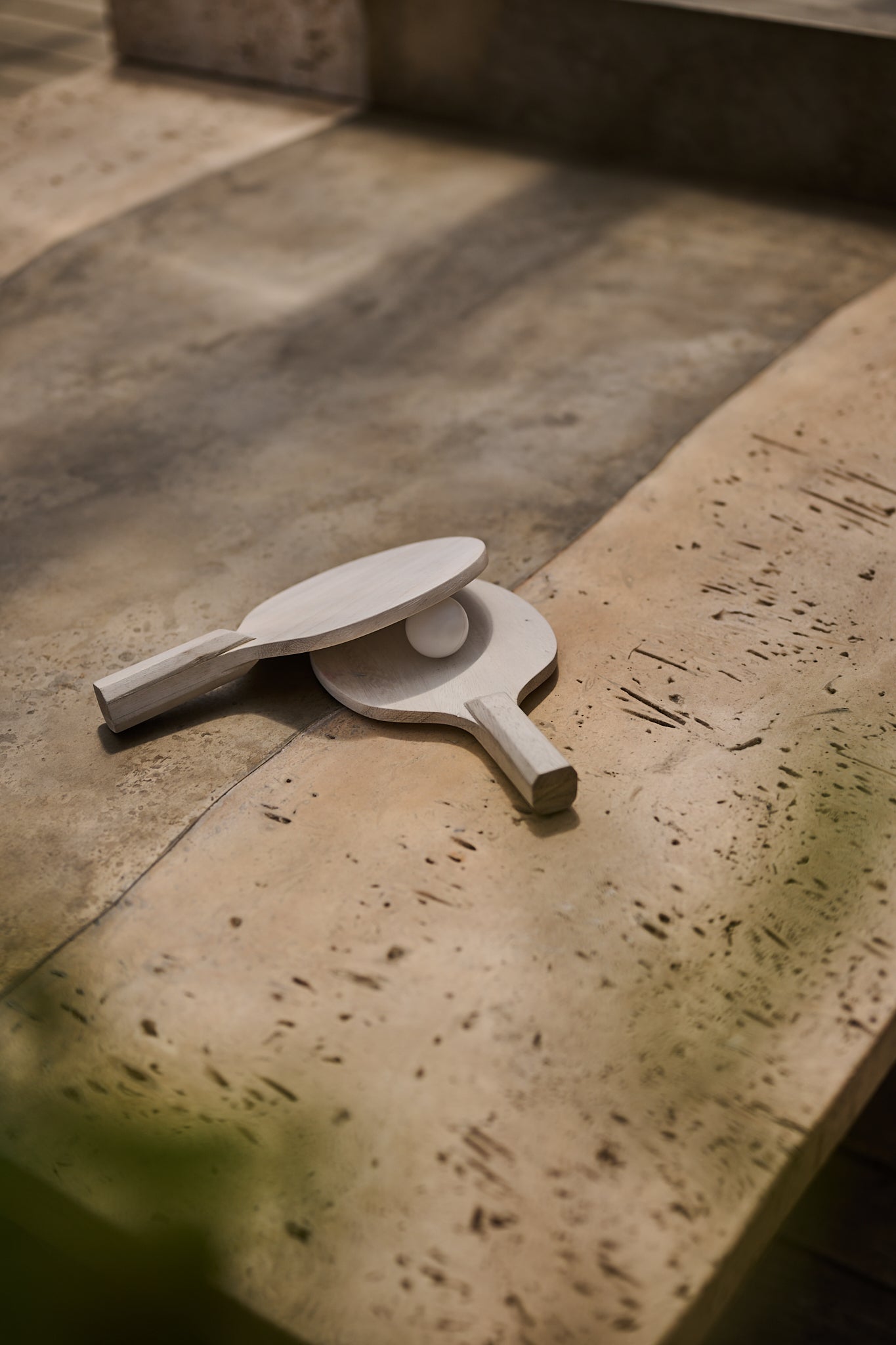 Su diseño versátil incluye una red magnética removible y accesorios completos (palas y pelotas), ideal para reuniones familiares. Al retirar la red, se transforma elegantemente en un comedor. Cada mesa es única en sus variaciones naturales, diseñada para crear momentos inolvidables y elevar el arte de compartir.