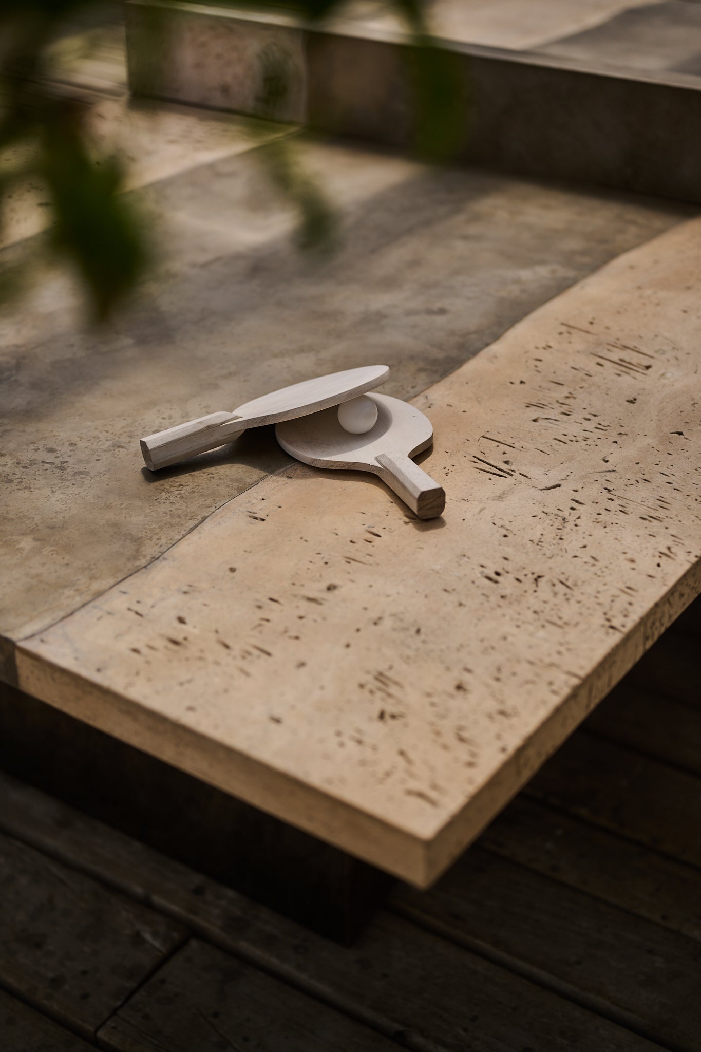 Descubre nuestra mesa de ping pong, una obra maestra que fusiona la belleza natural con la funcionalidad. Hecha a mano por artesanos mexicanos, combina la elegancia del travertino con la resistencia del aluminio añejado, resultando en una pieza escultórica y de calidad excepcional.