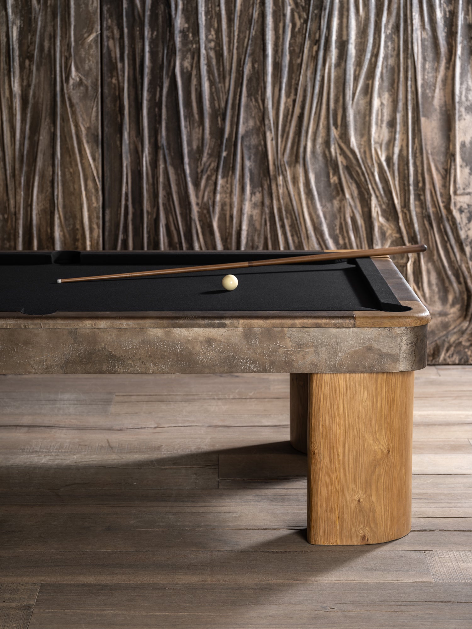 El acabado en aluminio ahumado y roble ahumado no solo aporta una estética sofisticada, sino que también resalta las texturas naturales de los materiales, creando un ambiente acogedor en tu hogar. Su diseño elegante la convierte en el centro de atención, ya sea durante una emocionante partida de billar o al disfrutar de una cena con amigos y familiares.